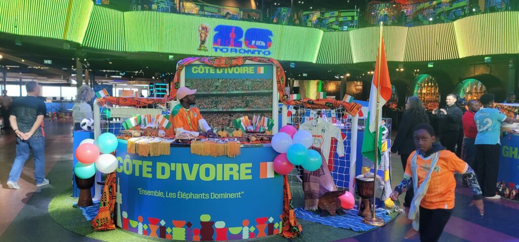 Un stand dédié à la Côte d’Ivoire a été installé dans l’espace d’exposition de l’événement, mettant en valeur les couleurs nationales, la richesse culturelle ivoirienne ainsi que la passion du pays pour le football, sport fédérateur et vecteur d’unité nationale.